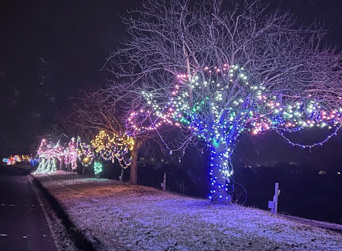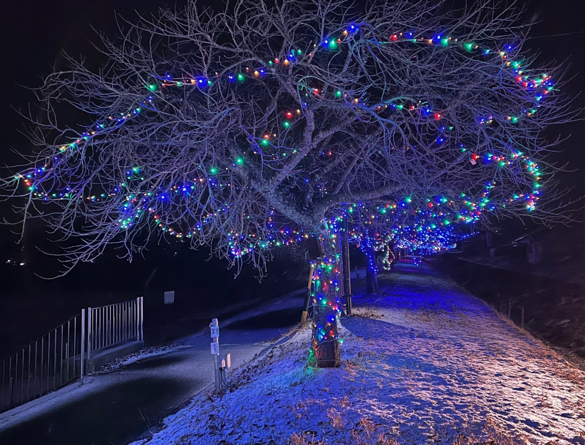天龍峡八重桜街道(飯田市龍江)で1月11日、冬のイルミネーションが点灯した。