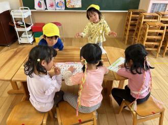 飯田市松川入財産区が4月17日、明星保育園(飯田市鼎切石)で木製ベンチなどの贈呈式を行った。