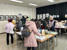 本殿前では、飯田下伊那の菊花会会員やシニア大学OBによる「奉納大菊花展」も同時開催しており、約80点の大輪菊を展示している。
