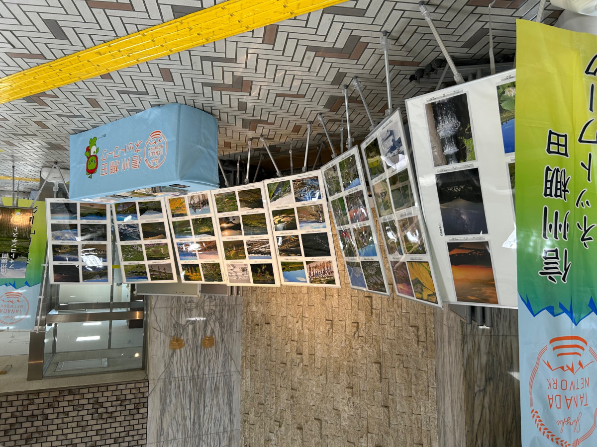 同庁舎1階の正面玄関ホールには、審査員特別賞と入賞作品合わせて61点を展示。南信州管内は11作品で、飯田市内の「飯沼」「よこね田んぼ」をはじめ、豊丘村の福島(ふくじま)の棚田の風景写真のほか、「日本の棚田百選」にも登録されてる「姨捨(おばすて)の棚田」(千曲市)や「稲倉(いなぐら)の棚田」(上田市)などの写真も展示している。