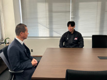 高森町在住でパラアイスホッケー日本代表主将の熊谷昌治選手が11月26日、高森町役場を表敬訪問し、壬生照玄町長に「ミラノ・コルティナ冬季パラリンピック出場権獲得」を報告した。