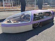 同部門には同校から3台が出場。このうち「Div NEXT」には今年製作の新規車体「WISDOM J(ウイズダム・ジュピター)」でエントリー。1年生を中心に木材などを使い、8月に製作に取りかかり12月に完成。飯田自動車学校(鼎切石)の教習コースで試走を重ね、本番に臨んだ。