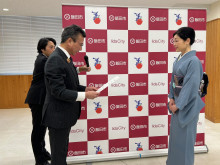 飯田市千代出身の演歌歌手・小沢あきこさんの飯田市産業親善大使任期満了に伴い、飯田市は2月3日、小沢さんに5期目の委嘱状を交付した。