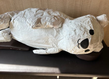 当日は、天竜峡新聞店(飯田市龍江)2階の元美容サロンがあったスペースに、天龍峡をイメージした平面作品、昨年9月の「ナイトミュージアム2」の造形作品など50点以上を展示するほか、手芸モールを使ったワークショップも開く。
