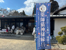 薬師猫神様の公開に合わせた「薬師猫神様縁日」が2月22日・23日の2日間、瑠璃寺(高森町大島山)境内で開かれた。