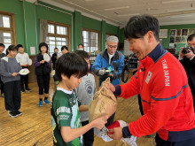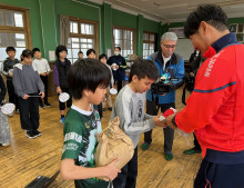 当日は、歌や手作り応援うちわでエールを送ったり、最後まで諦めない気持ちを伝えるため、制限時間5分で縄跳び連続500回に挑戦したりしたほか、学校の田んぼで5年生が育てた米や応援メッセージを書いた国旗を贈った。2月は熊谷選手の誕生月だったこともあり、サプライズでバースデーソングを歌うなどして祝った。