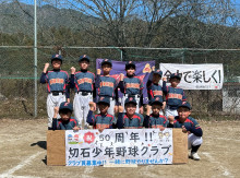 切石少年野球クラブが3月8日、結成50年を記念した交流戦を行い、その後、親睦会を開いた。現役OBら約40人が参加した。
