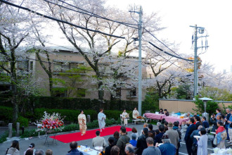 名古屋からツアーで訪れた女性は「子どもたちのガイドがしっかりしていた。花びらの数が違うことにも驚いた」、安曇野市から家族3人で訪れ、飯田女子短期大学(現在の飯田短期大学)を卒業したという女性は「舞台桜を見に来たのは初めて。改めて子どもたちのガイドを通じ地元の良さを感じることができた」と、それぞれ話していた。