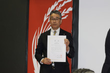 旭松食品(飯田市駄科)の高野豆腐「新あさひ豆腐」シリーズが4月16日、「第1回災害食アワード2026」表彰式でダブル受賞した。