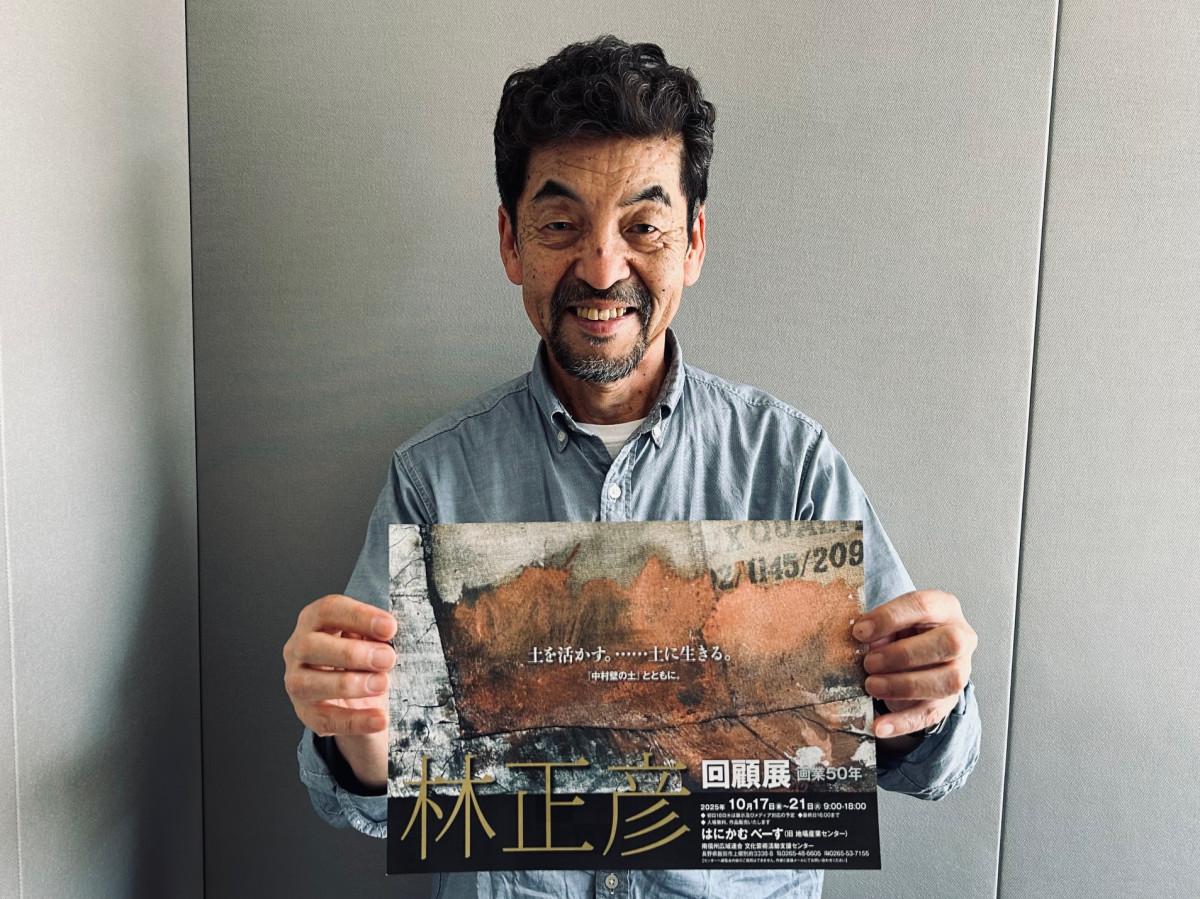 飯田市出身の現代美術家・林正彦さんの「回顧展画業50年」が10月17日、「はにかむべーす、文化芸術活動支援センター」(飯田市上郷別府)で始まる。