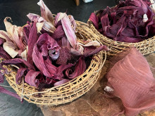 草木染工房「山の雫」による展示販売会「山の雫展~はずむ草木染~」が12月5日、アートハウス(飯田市上郷、TEL 0265-24-5811)で始まった。