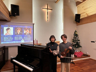 飯田風越高校華道部の、1階入り口にクリスマスをテーマにした生け花「クリスマス華展」