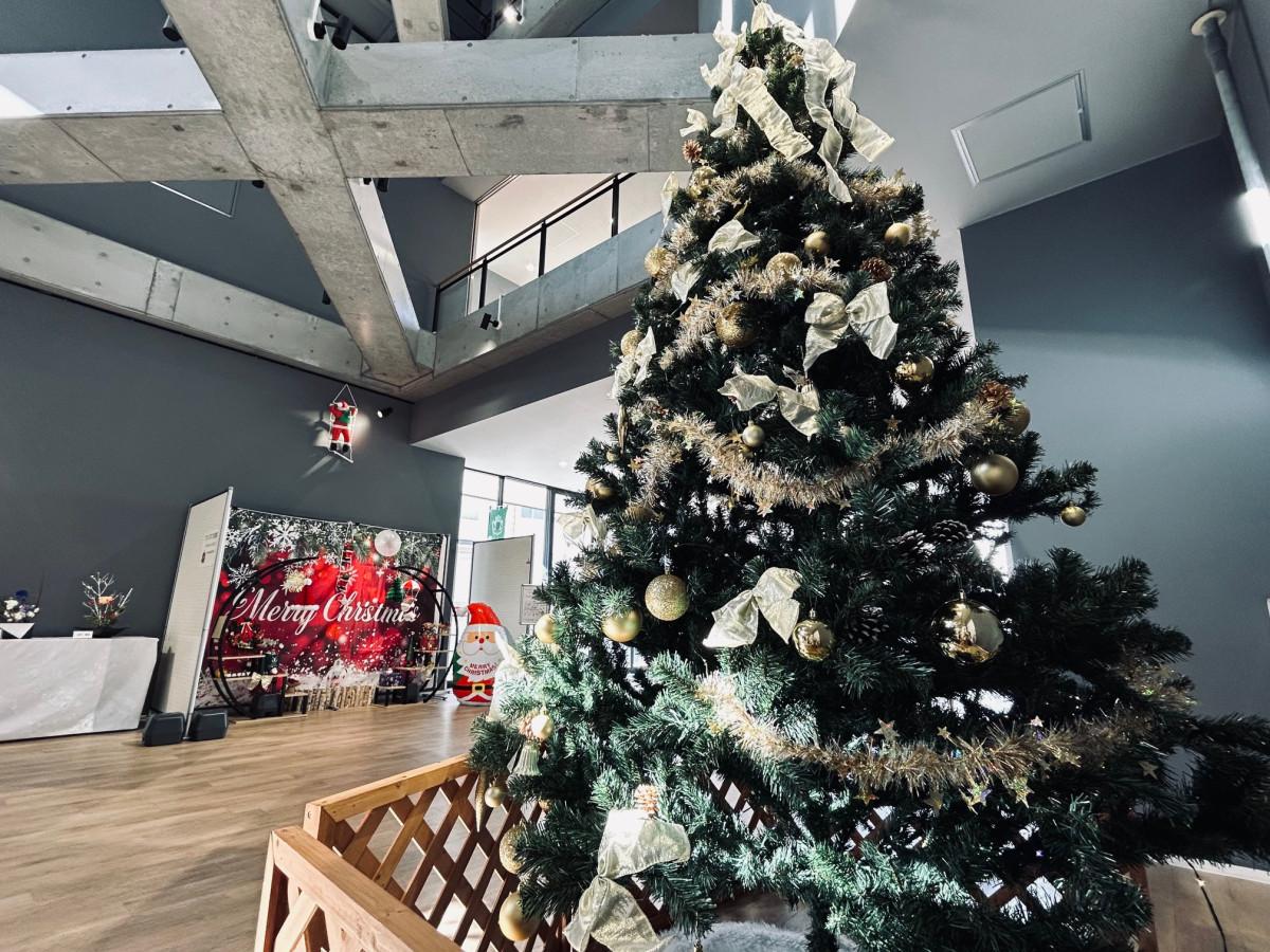 JR飯田駅前の複合施設「丘の上結いスクエア」(飯田市東和町)が現在、クリスマス仕様に飾り付けられている。