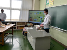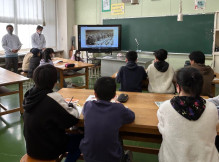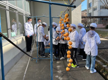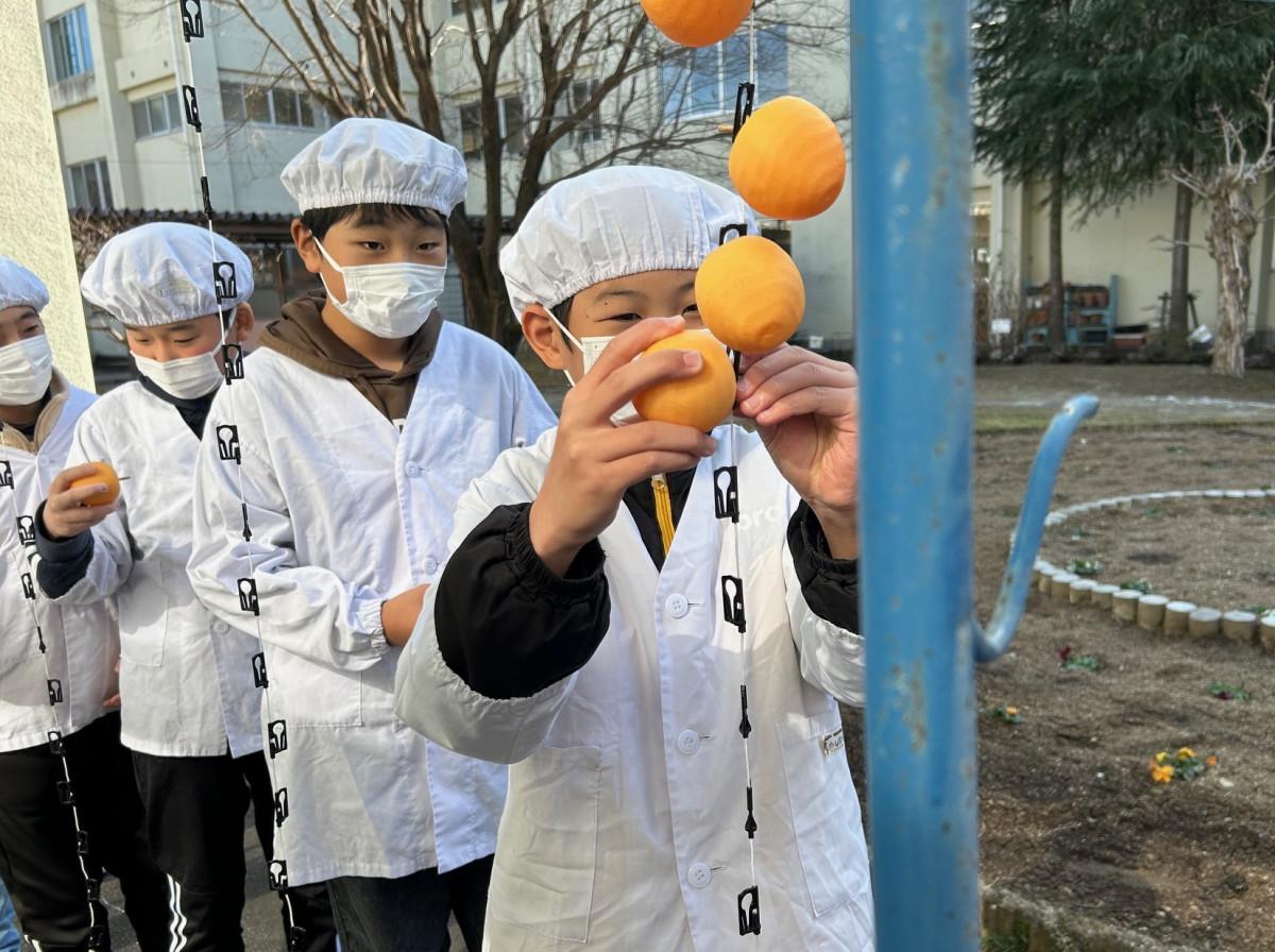 JAなど市田柿を生産する38団体で構成する市田柿活性化推進協議会が1月28日、龍江小学校(飯田市龍江)で飯田下伊那特産の市田柿をテーマに食育事業を行った。