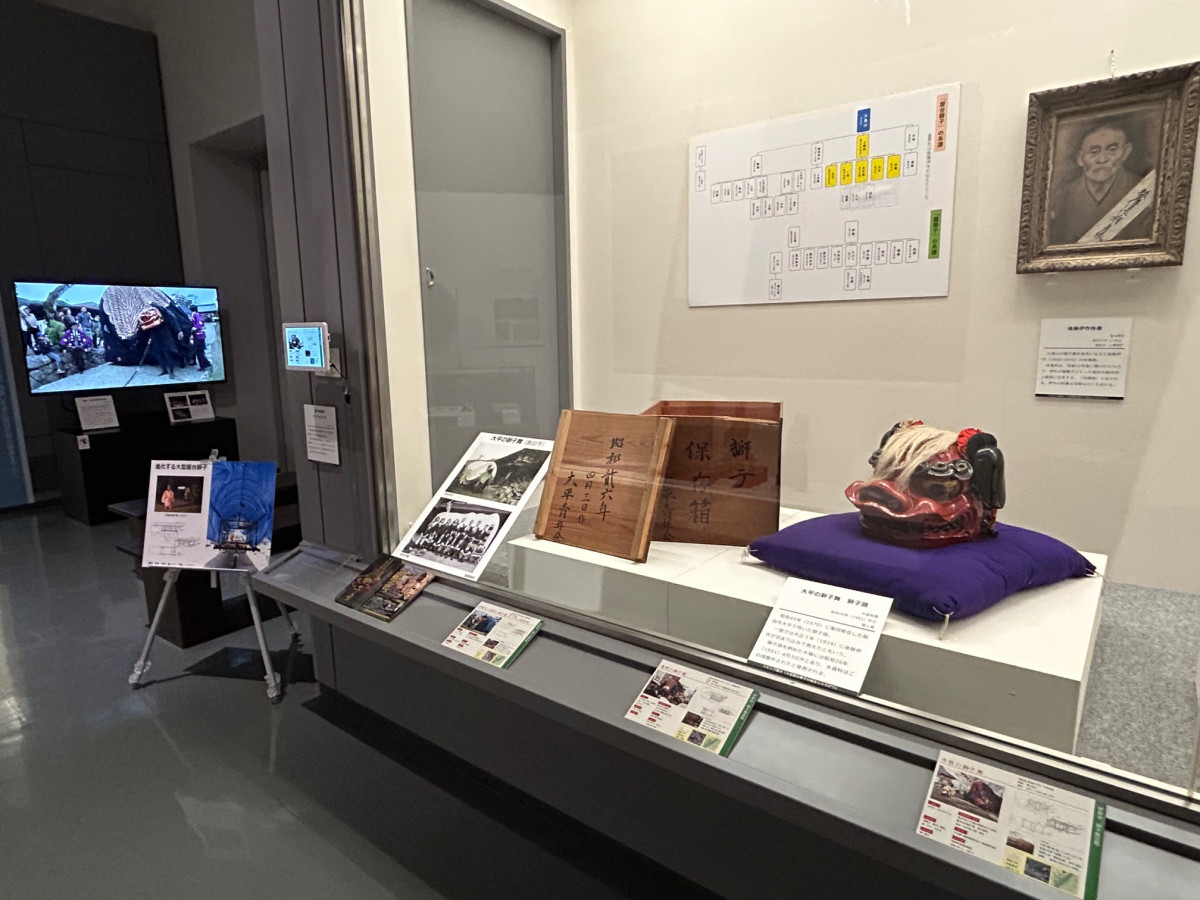 飯田市美術博物館(飯田市追手町)で現在、文化トピック展示「大型屋台獅子の誕生とひろがり」が開かれている。