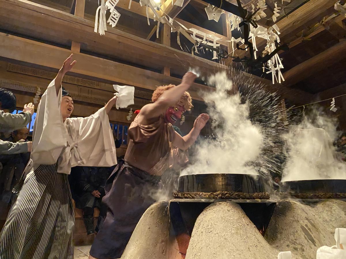 国重要無形民俗文化財「遠山の霜月祭り」(飯田市上村・南信濃)が12月6日、中郷・正八幡宮(上村中郷地区)と小道木熊野神社(飯田市南信濃小道木・川合地区)を皮切りに始まった。