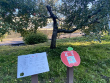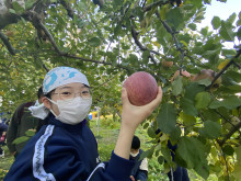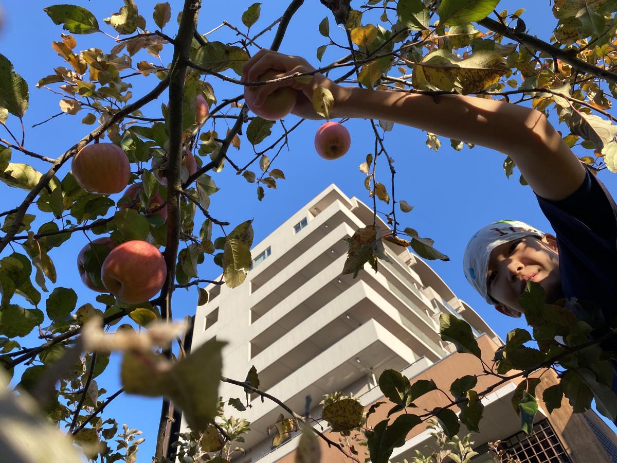 飯田東中学校(飯田市高羽町)が11月17日、飯田市中心市街地のリンゴ並木で「収穫を祝う会」を開き、今年最後の収穫作業を行った。