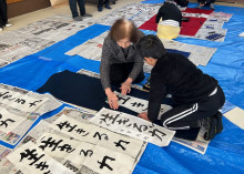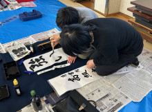 橋北公民館(飯田市江戸町)で1月4日、恒例行事「書き初め・正月遊び体験」が行われた。
