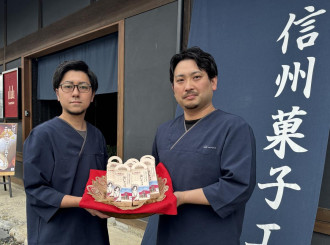 極大粒の大豆「つぶほまれ」を使った新商品「添いチョコ」を、洋菓子製造販売の「山山SANSEN(さんせん)」(飯田市桐林)が10月1日に発売した。