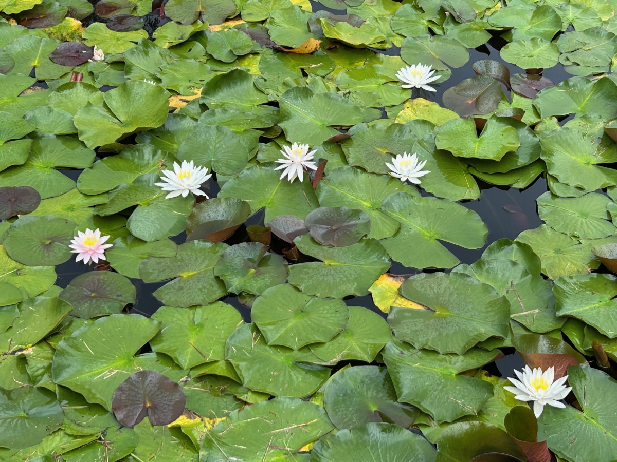 ギャラリー南無の「睡蓮(すいれん)・蓮(はす)池」(飯田市立石)で、スイレンの花の見頃が続いている。