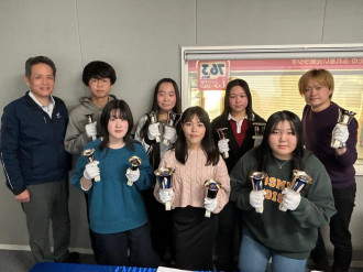 飯田OIDE長姫高校(飯田市鼎)の吹奏楽部3年生6人が、地元企業「花井メディテック」(北方)の「HANAIハンドベル」を使ってクリスマスソングなどを演奏した。