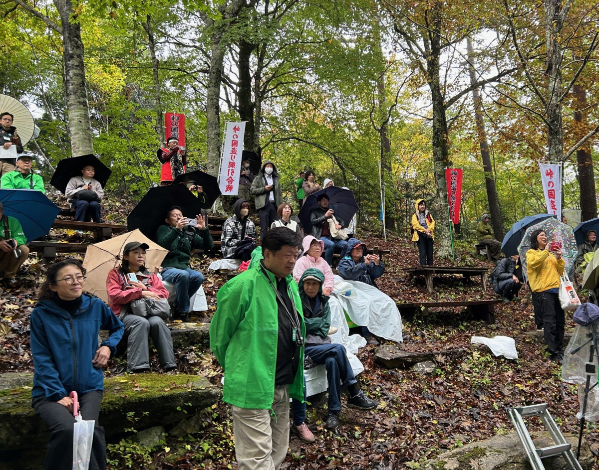 長野と静岡県境の「兵越峠(ひょうごしとうげ)」で10月26日、「峠の国盗り綱引き合戦」が開かれた。