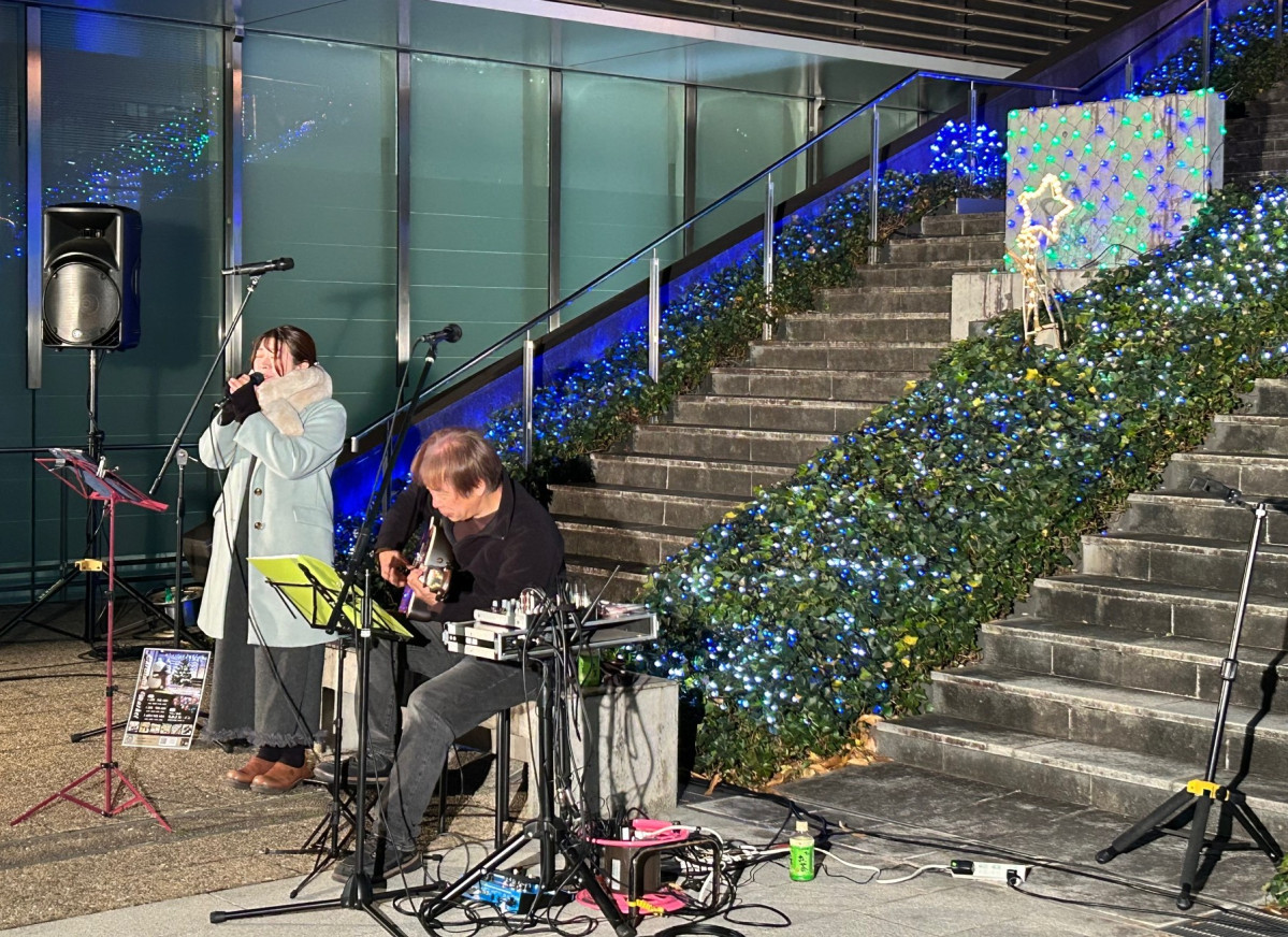 トップヒルズ本町飯田信用金庫本店(飯田市本町)前広場で12月5日、恒例のイルミネーションが始まった。