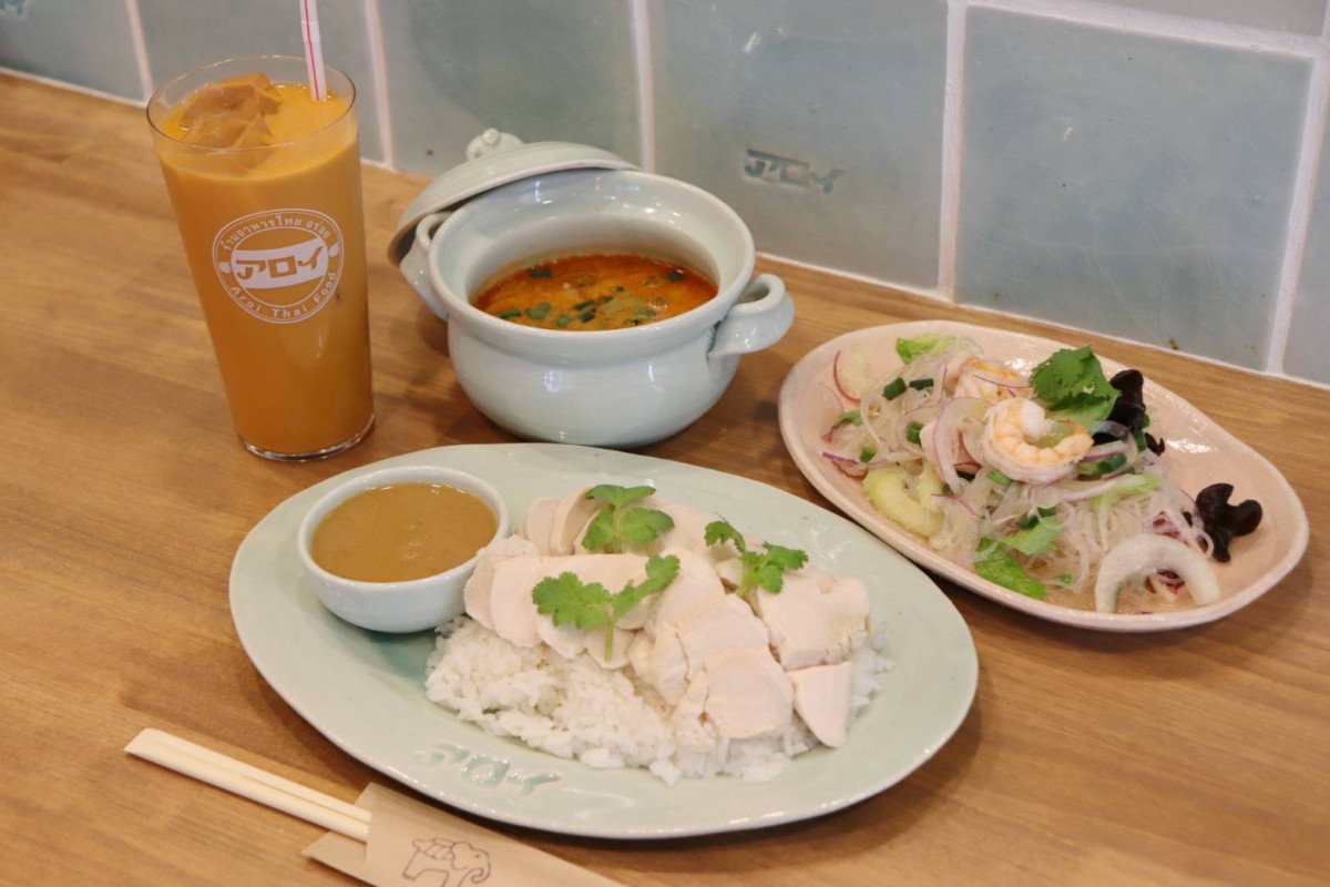鶏ムネ肉をしっとりと仕上げた「カオマンガイ」と「ヤムウンセン」タイ風春雨サラダも「アロイ」オリジナルプレートで提供