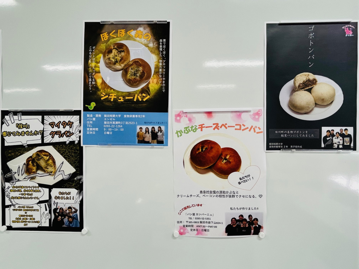飯田短期大学(飯田市松尾)の学生が、地元のパン店と共同で「オリジナルパン」8種類を開発した。
