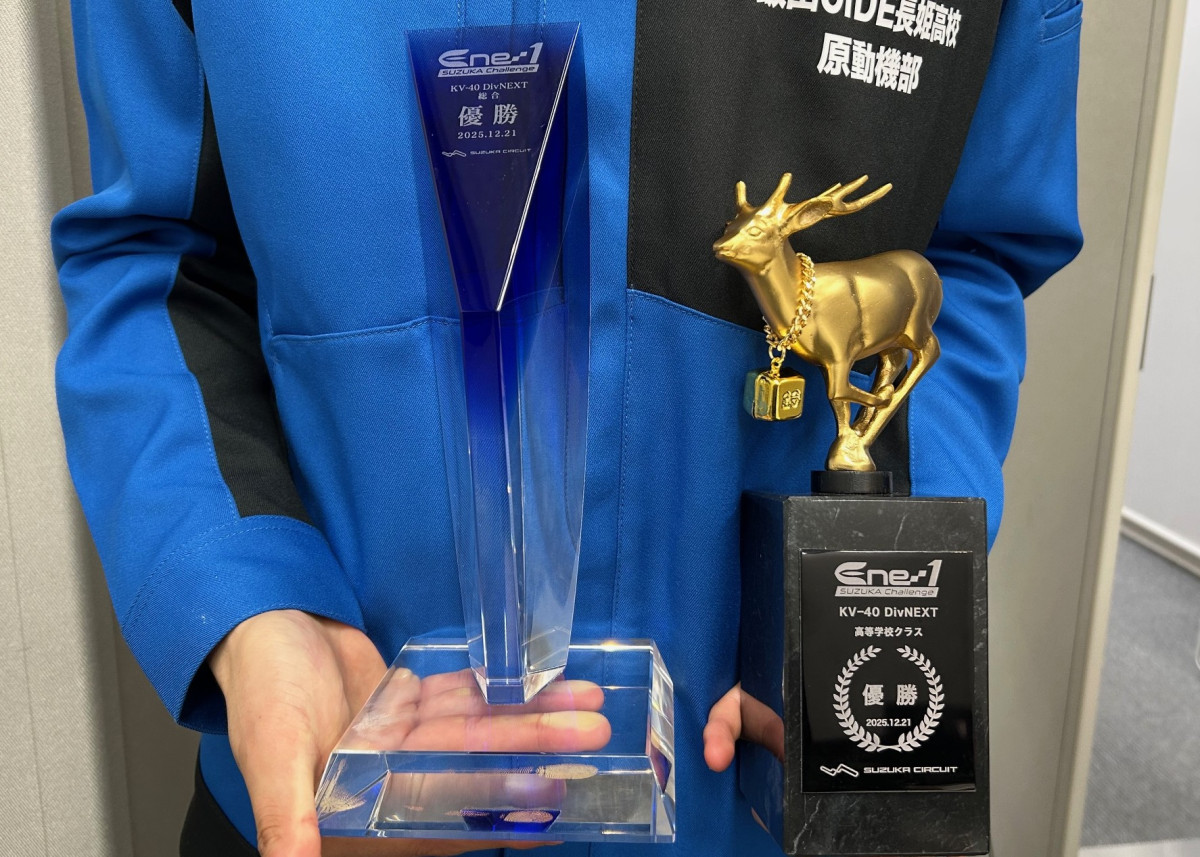 飯田OIDE長姫高校(飯田市鼎名古熊)の原動機部が12月21日、鈴鹿サーキット(三重県鈴鹿市)で開催された「2025 Ene-1 SUZUKA Challenge」の全国大会で電気自動車の「KV-40 Div1」の高校生部門でトップに輝き、13連覇を達成した。
