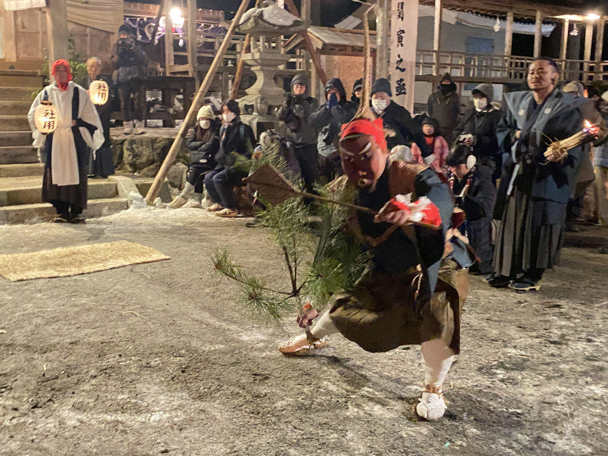 国の重要無形民俗文化財で、阿南町新野地区で「寒い、眠い、煙い」祭りといわれる「新野の雪祭り」が1月13日~15日、諏訪神社と伊豆神社で行われた。