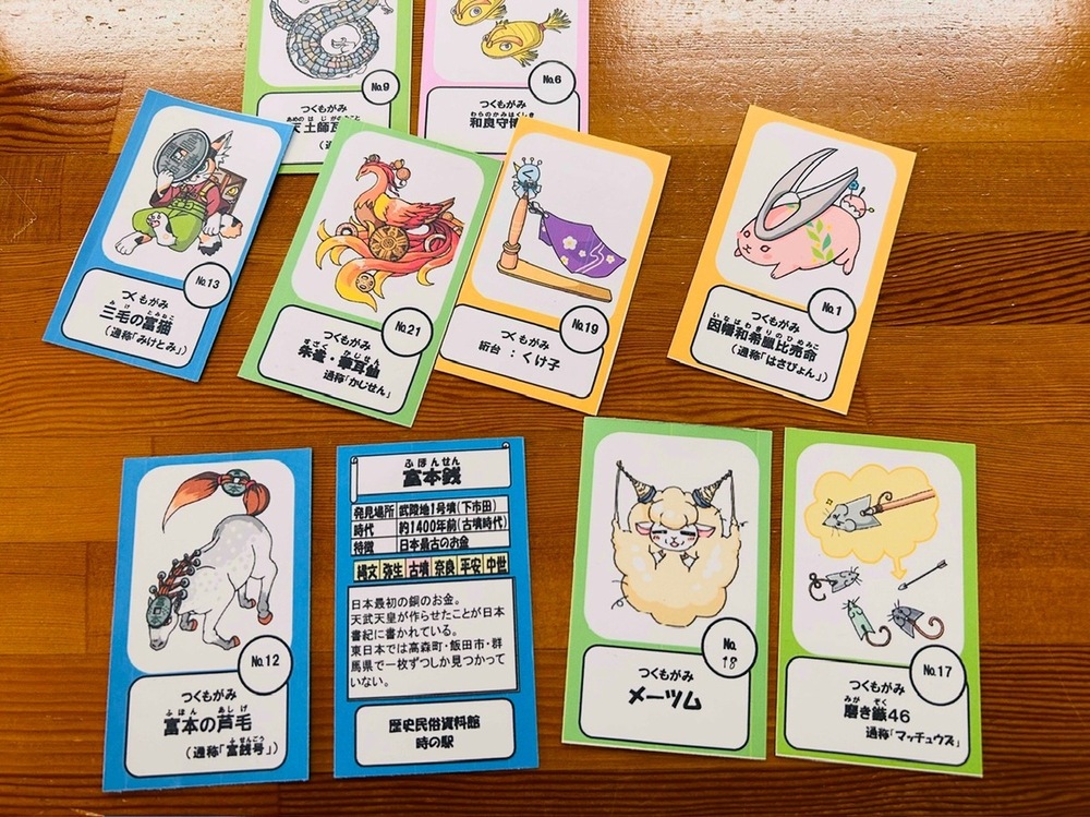 キャラクターは同館学芸員がデザインし、裏面にはモデルとなった道具や遺物の特徴や時代背景を記載