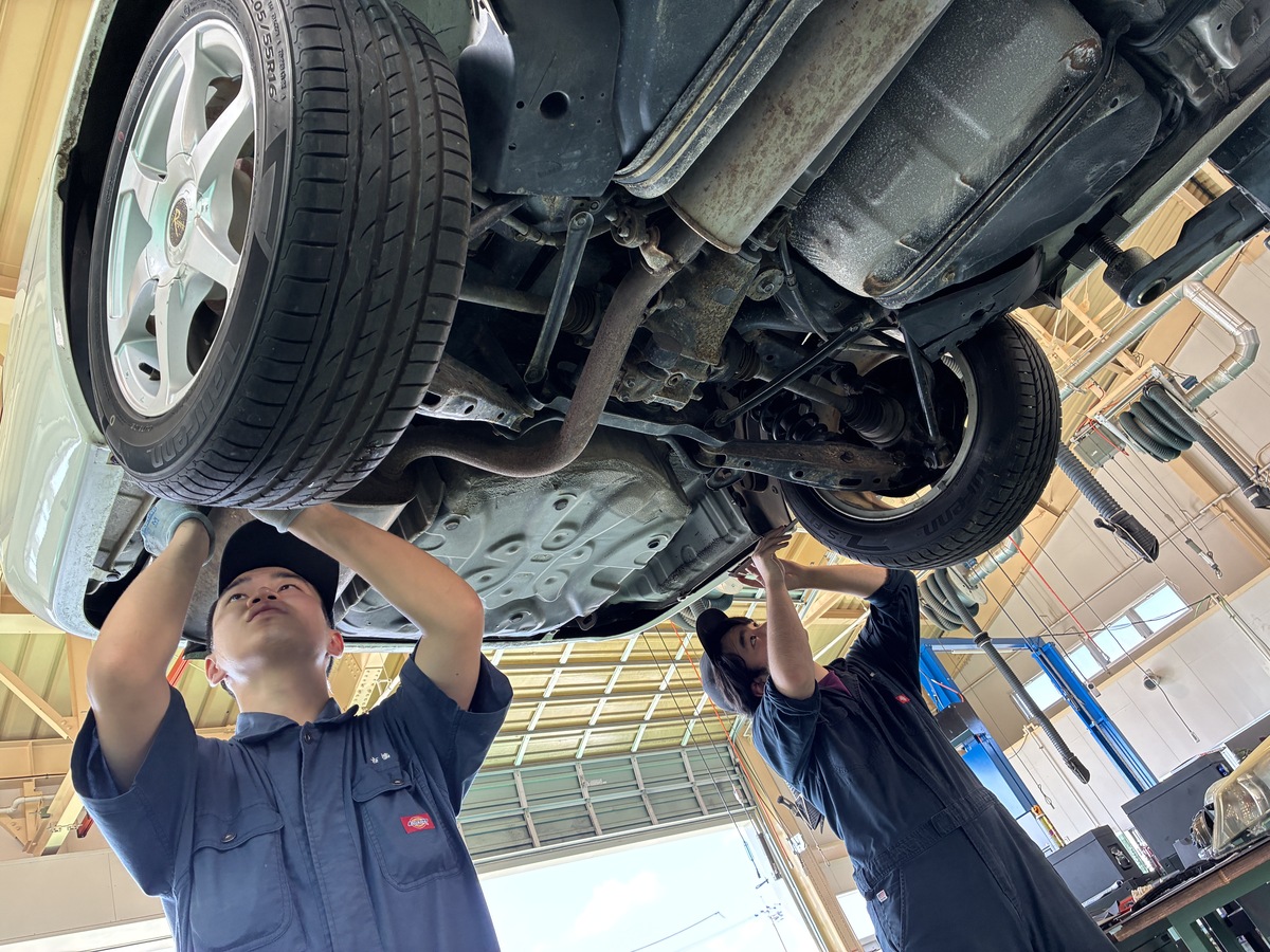 自動車整備科では2年次には実際に車検や整備の実習を行う