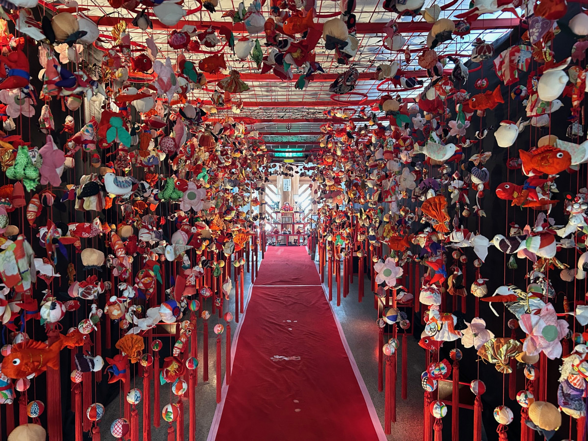 色とりどりの飾りをつるし、トンネル状の空間を演出