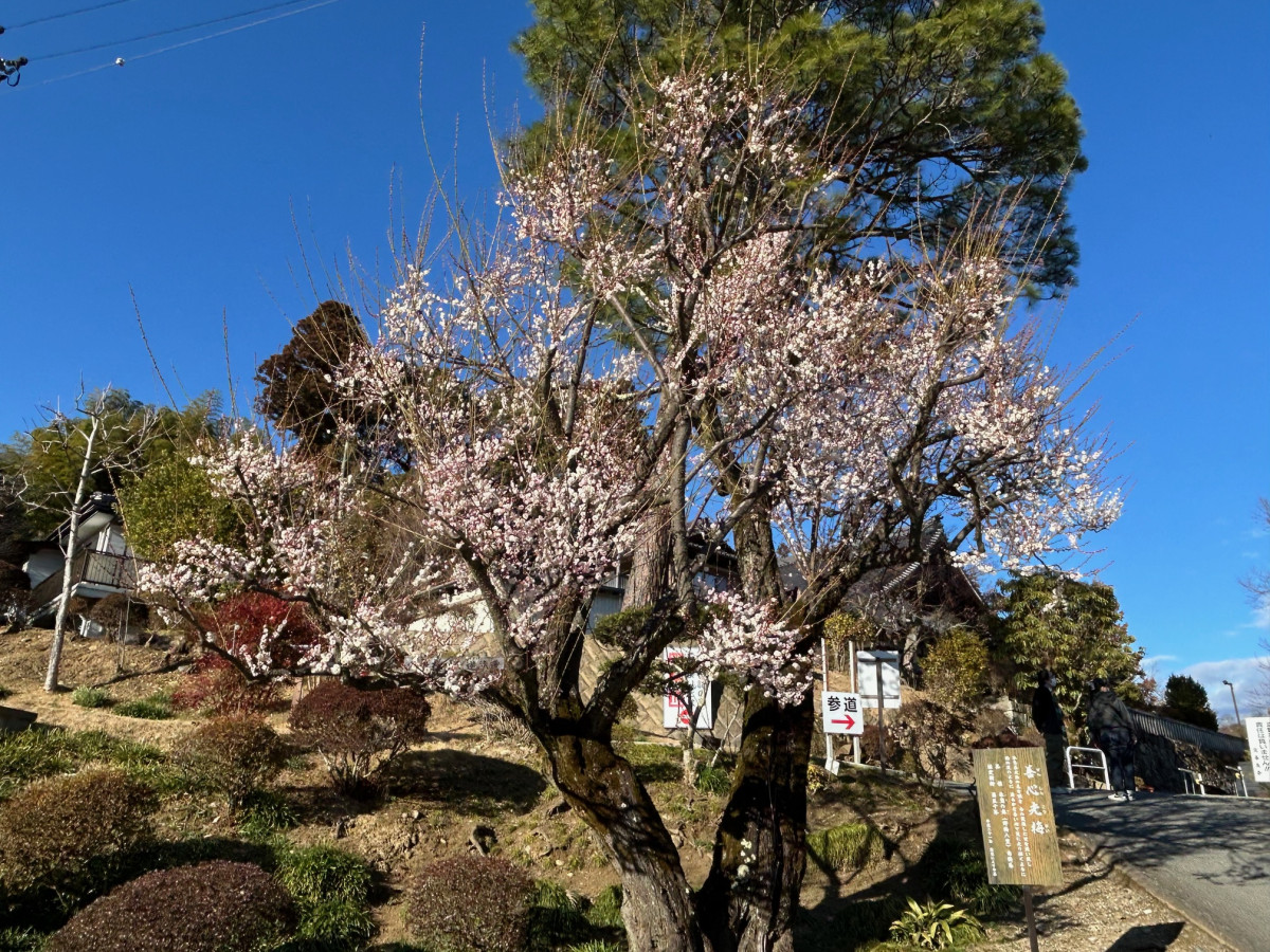 元善光寺の境内にある白梅「善心光梅」。2026年2月26日撮影