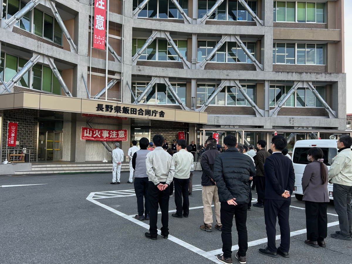 春の山火事予防運動に伴う「山火事予防パレード」の出発式が3月2日、県飯田合同庁舎前で開かれた。