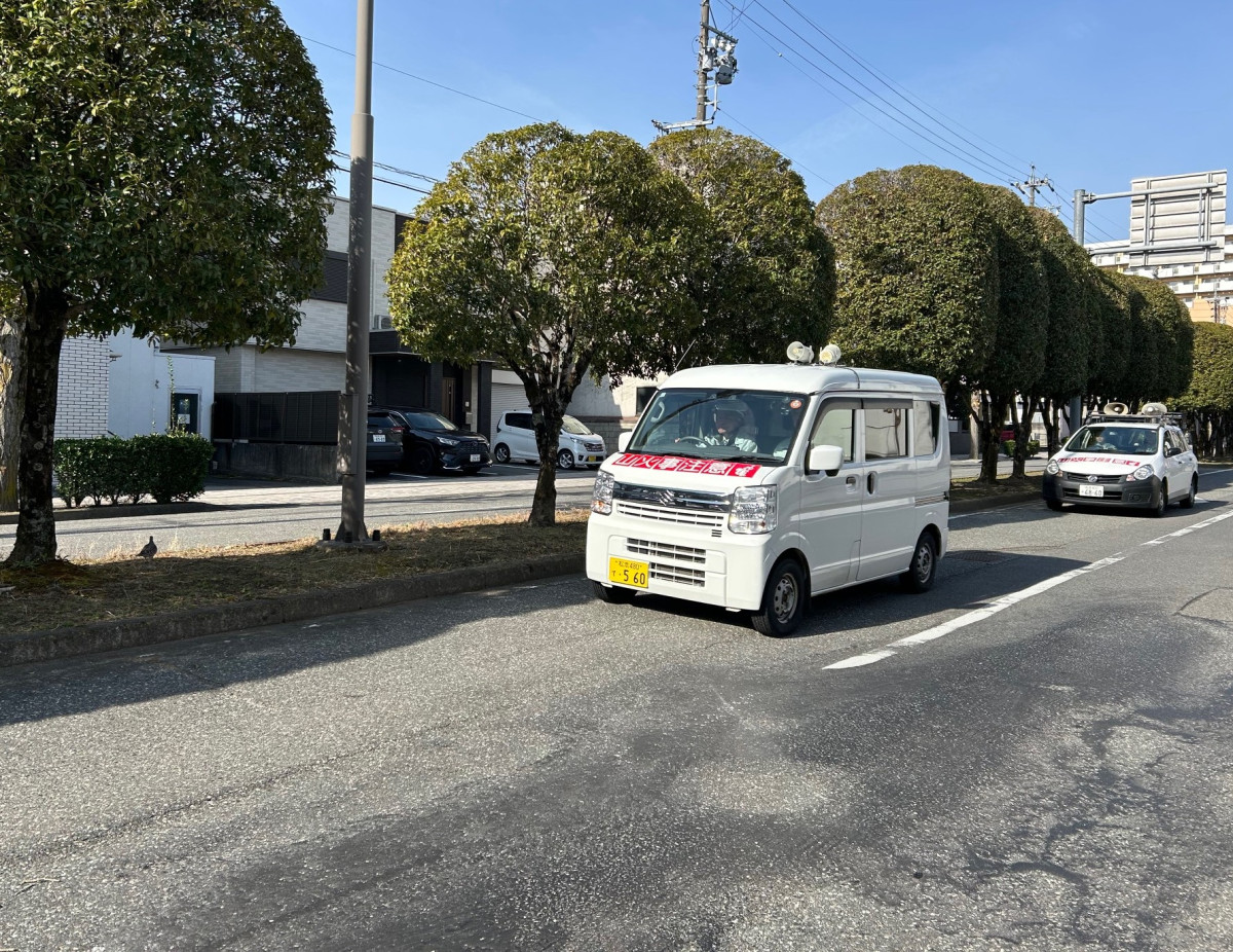 合庁前の通りをパレード走行し広報へ