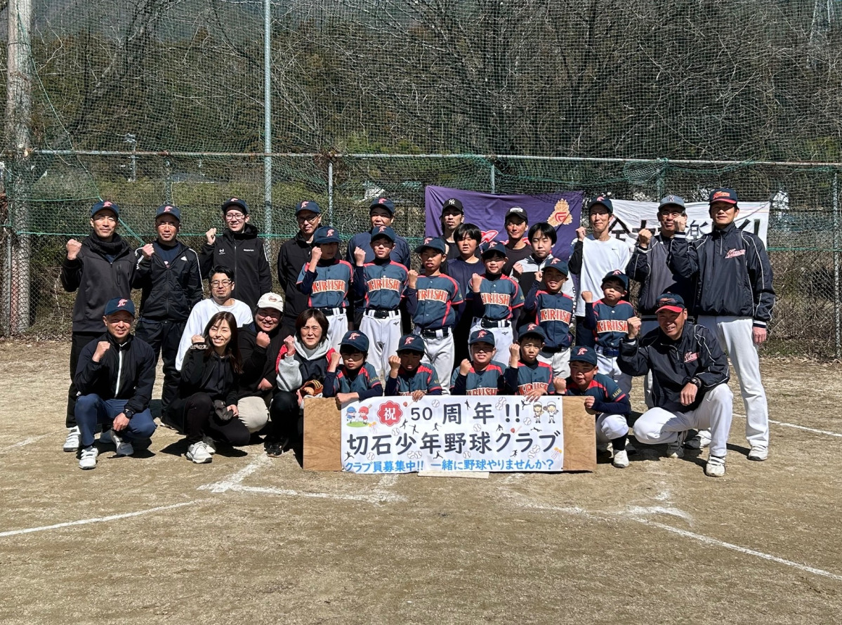 切石少年野球クラブが3月8日、結成50年を記念した交流戦を行い、その後、親睦会を開いた。