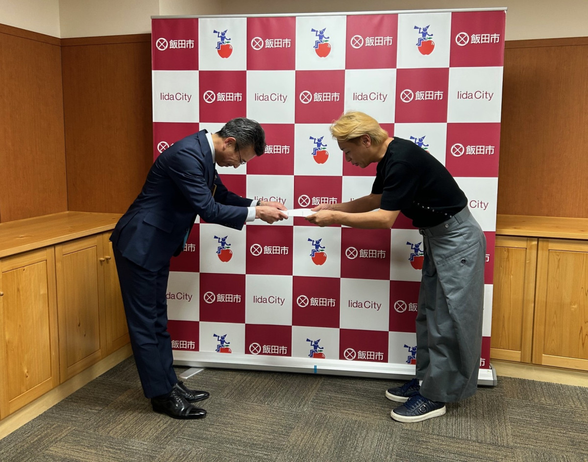 飯田出身で、「おぐねー」の愛称で知られるヘアメーキャップアーティスト、小椋ケンイチさんの飯田市産業親善大使任期満了に伴い、飯田市は4月1日、小椋さんに5期目の委嘱状を交付した。