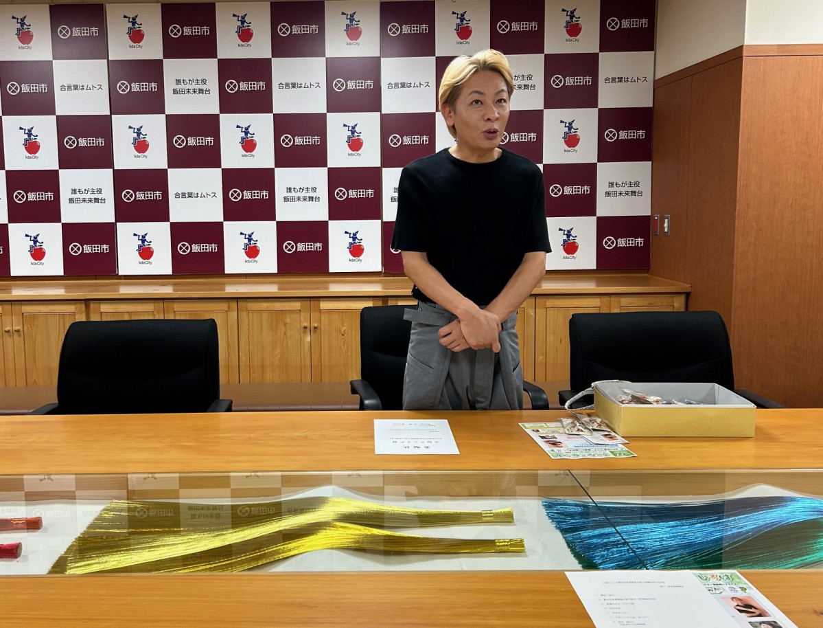 飯田出身で、「おぐねー」の愛称で知られるヘアメーキャップアーティスト、小椋ケンイチさんの飯田市産業親善大使任期満了に伴い、飯田市は4月1日、小椋さんに5期目の委嘱状を交付した。