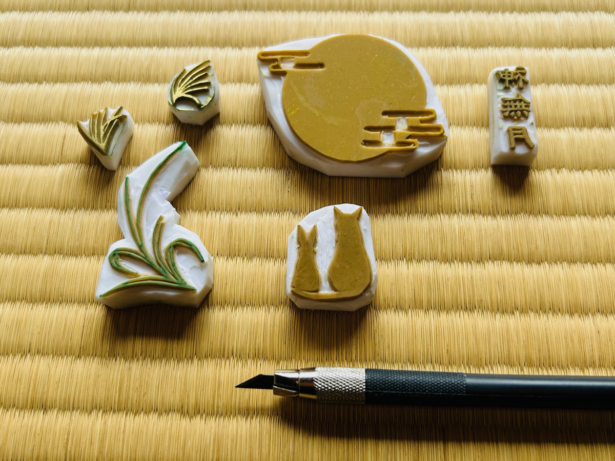 「猫の日」特別御朱印を飾る、消しゴムはんこの原版