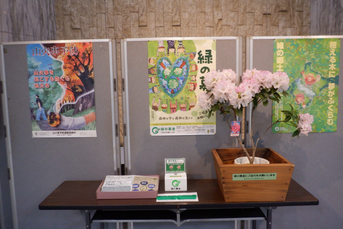 長野県飯田合同庁舎(飯田市追手町)で4月9日、緑化推進特別強調月間(4月1日~5月31日)の緑化運動に合わせ「緑の募金」が始まった。