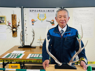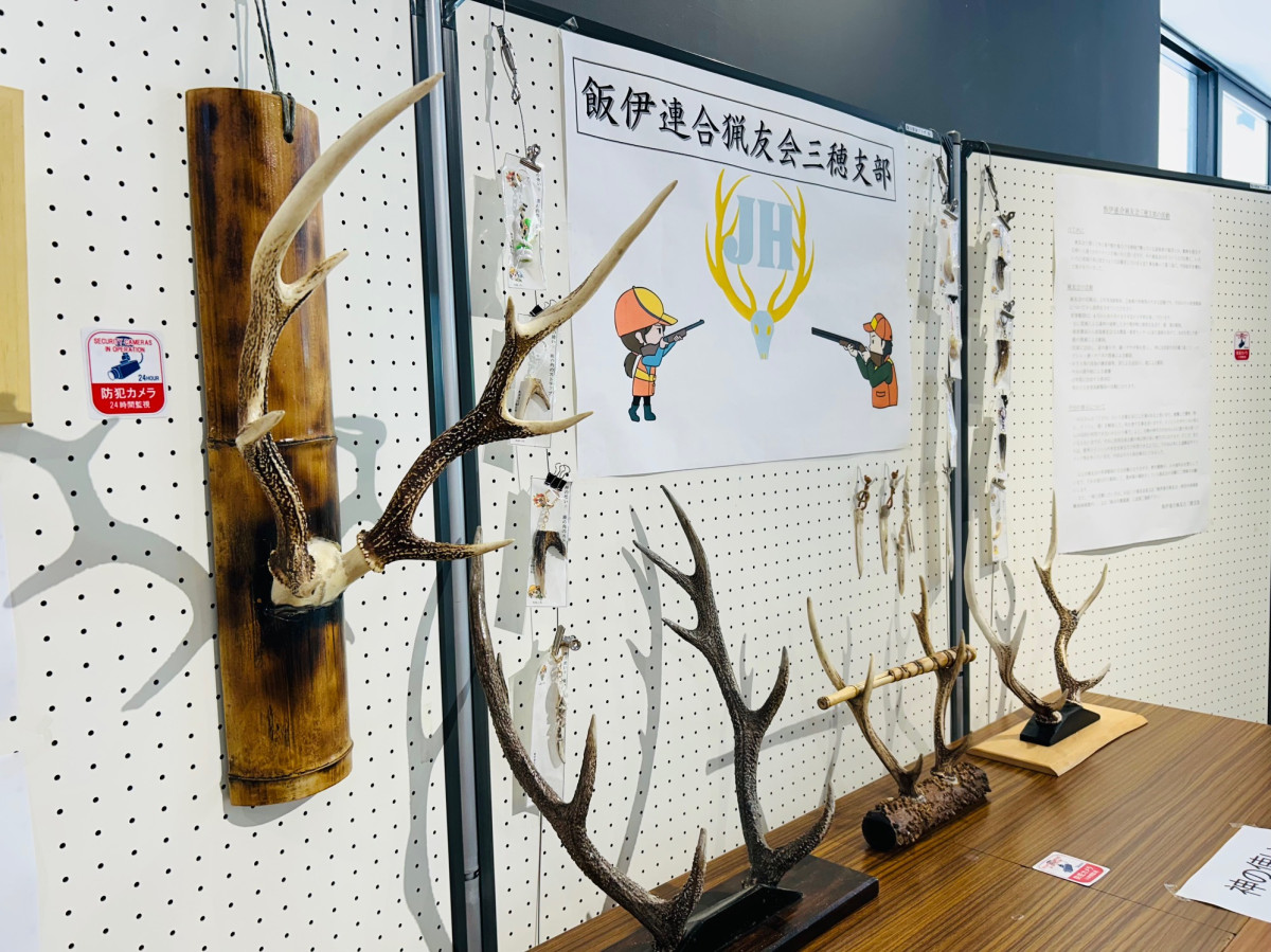 飯伊連合猟友会三穂支部による活動紹介の展示が現在、飯田丘の上結いスクエア(飯田市東和町)1階エントランスで行われている。