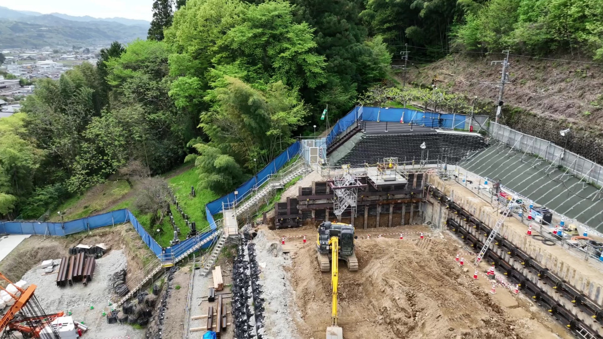 リニア中央新幹線の工事現場を一望できる「いいだ リニア展望台」(飯田市上郷飯沼)が4月22日、地域住民と報道関係者向けに公開された。