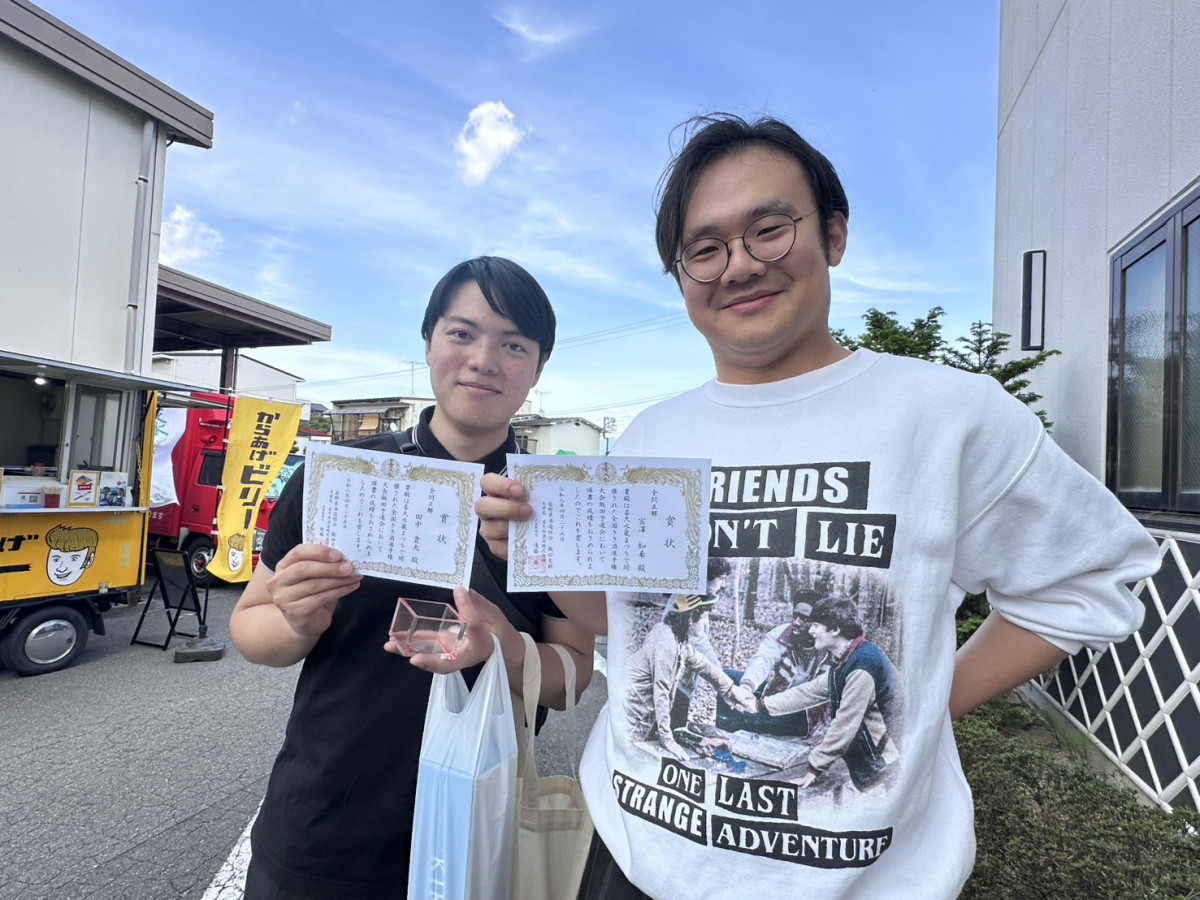 利き酒選手権で飯田代表に選ばれた田中貴大さん(左)と宮澤智希さん(右)