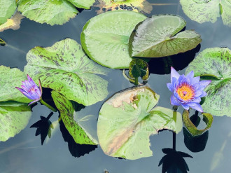 ギャラリー南無の「睡蓮(すいれん)・蓮(はす)池」(飯田市立石)で、スイレンの花の見頃が続いている。